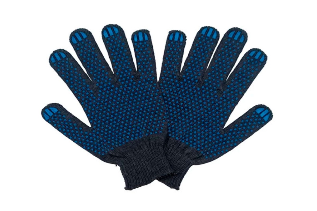 Перчатки х/б белые/черные с синей точкой 4нити