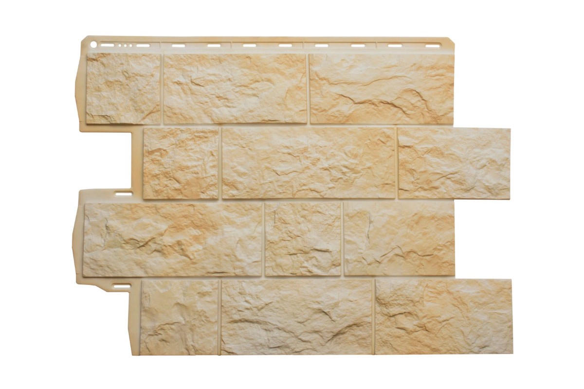 Коллекция Туф имеет фактуру вулканической горной породы и создает вид каменной постройки, хорошо подходит для отделки цоколя.