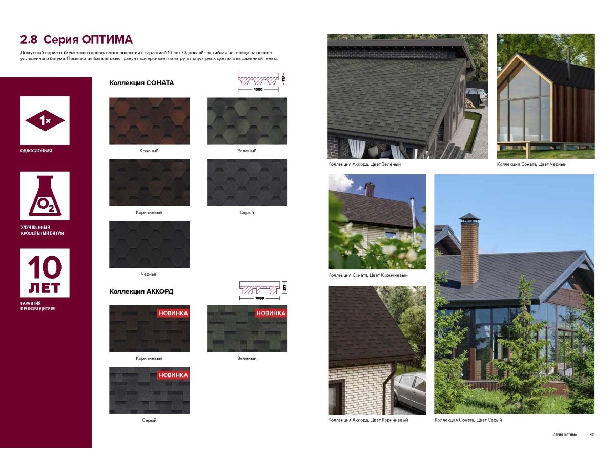 Однослойная черепица ТЕХНОНИКОЛЬ SHINGLAS серии «Оптима», изготовленная из стекловолокна с битумной ..